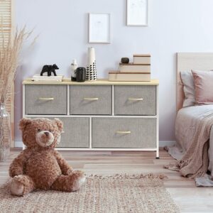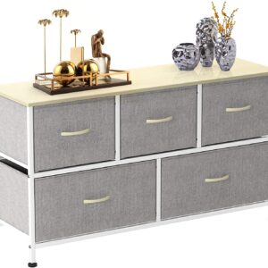 5 Drawer Dresser Storage, Fabric Storage Dresser for Bedroom or Nursery, Closet Dresser Organizers and Storage, Gray