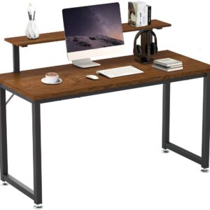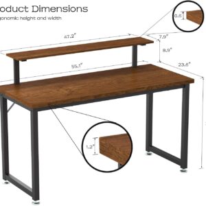 Computer Desk, 55'' Home Office Desk with Monitor Shelf, Work Desk for Home Office, Wood Large and Modern Style, Best Choice for Writing Work and Study